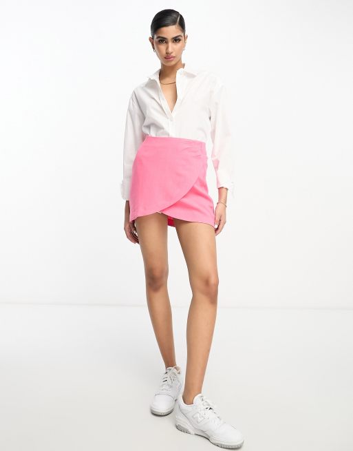 ASOS DESIGN wrap mini skirt with linen in pink Very well made.
