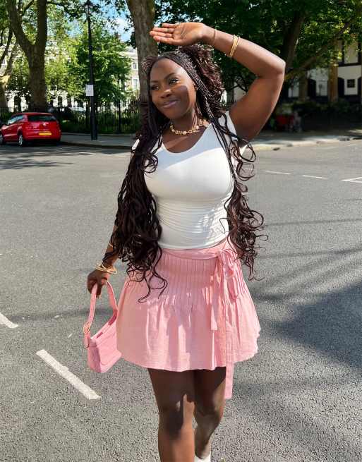 Labelrail x Sumbo Owoyele ultra mini pleated linen mini skirt in baby pink Very well made.