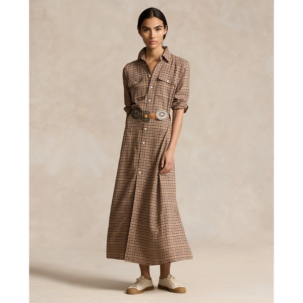 POLO RALPH LAUREN PLAID COTTON TWILL SHIRTDRESS Red Women s Long Dress YOOX Very well made.