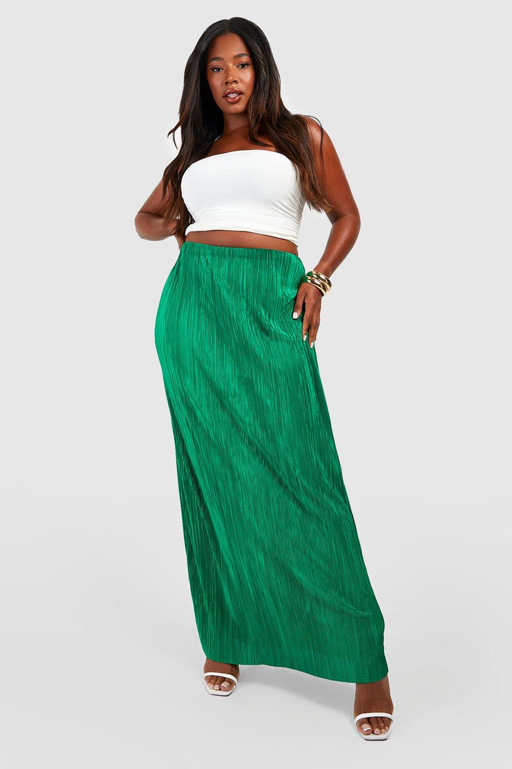 Plus Size Maxi Skirt High Waist Pleated Flowy Floral Green Print Very well made.