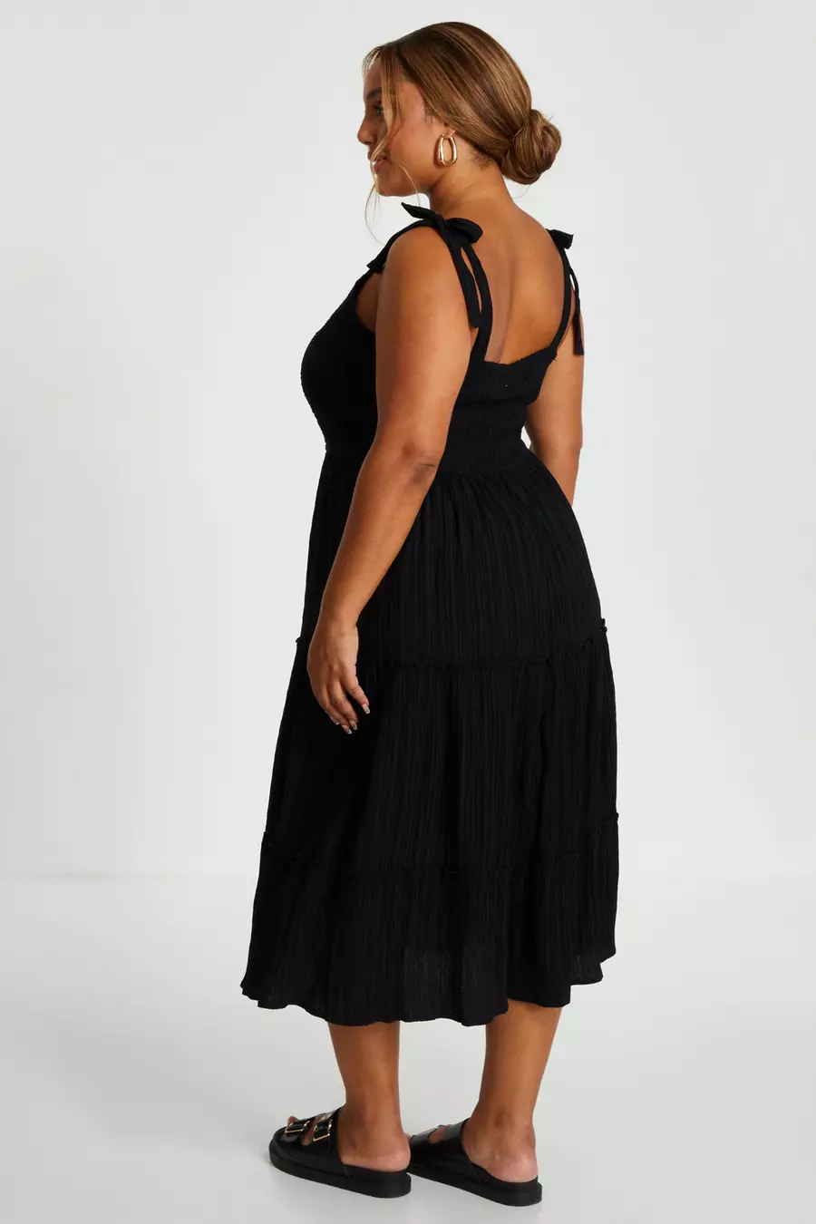 Curve Black Strappy Tiered Midi Dress QUIZ Clothing Very well made.