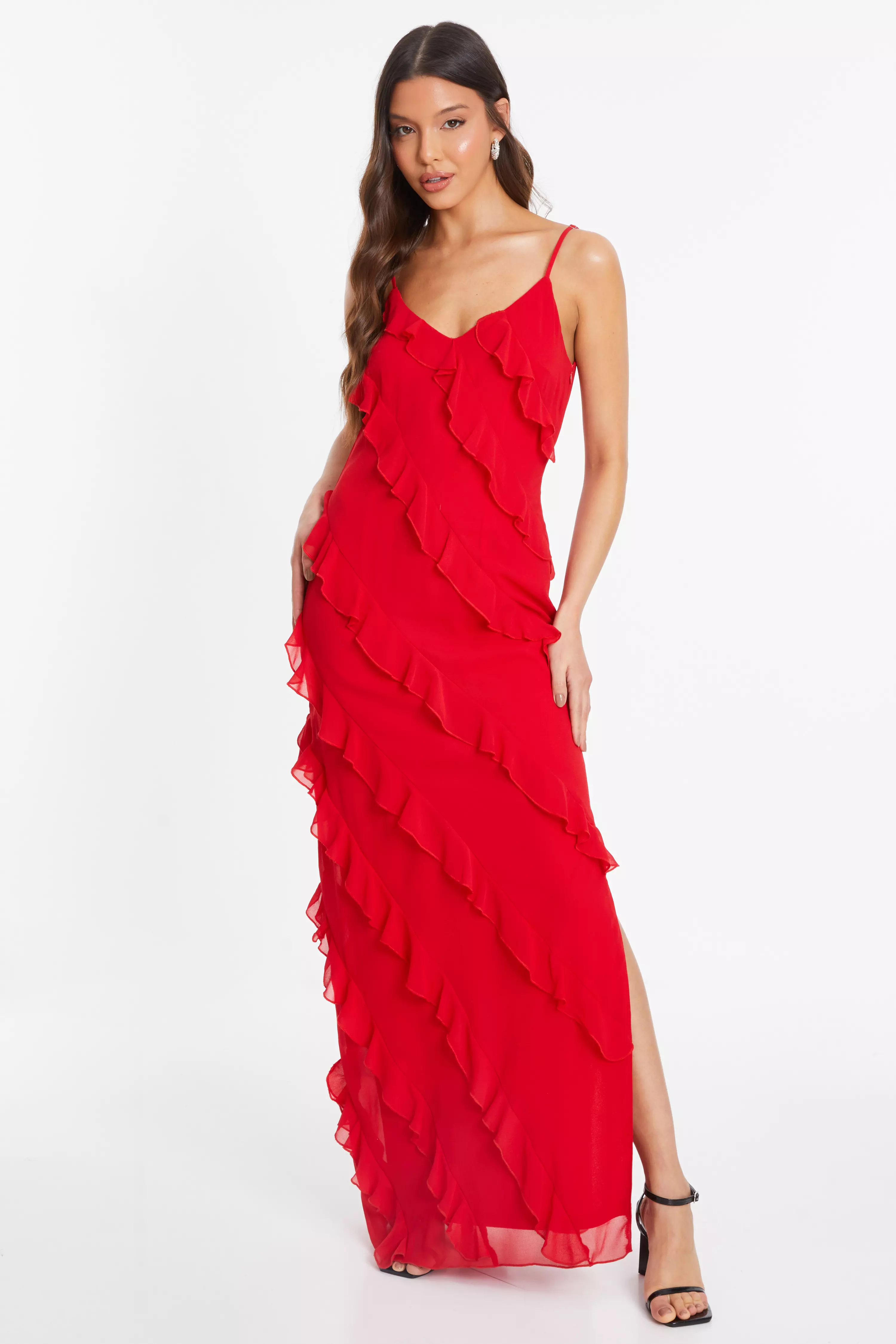 Red Chiffon Ruffle Maxi Dress QUIZ Clothing Very well made.