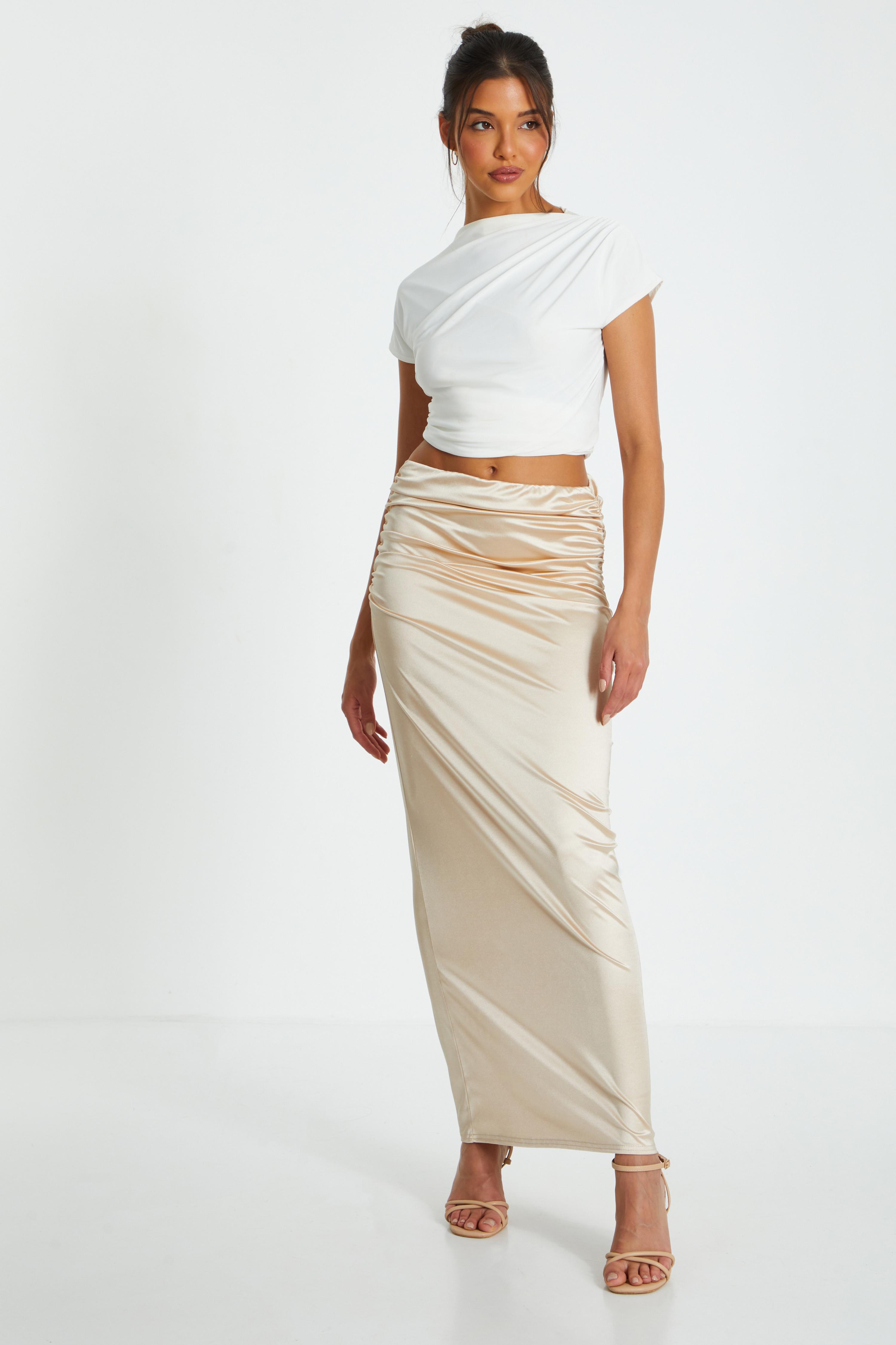 Champagne Satin Maxi Skirt QUIZ Clothing Very well made.