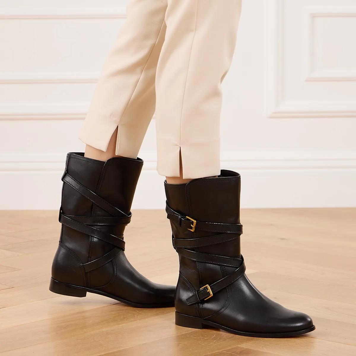 JUSTINE TWO TONE LEATHER RIDING BOOT Boots black deep saddle tan Very well made.