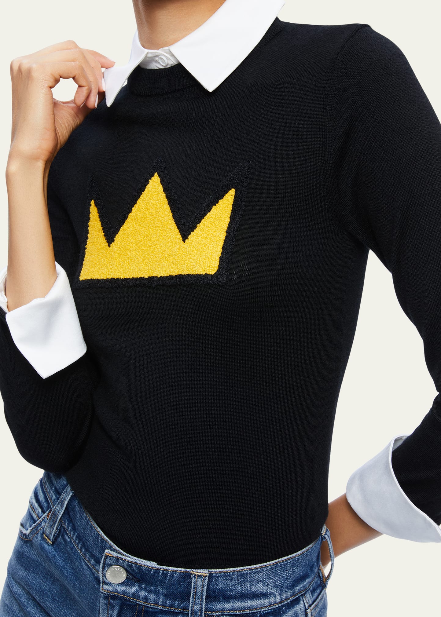 Alice And Olivia Porla Crown Collared Sweater In Black ModeSens Very well made.