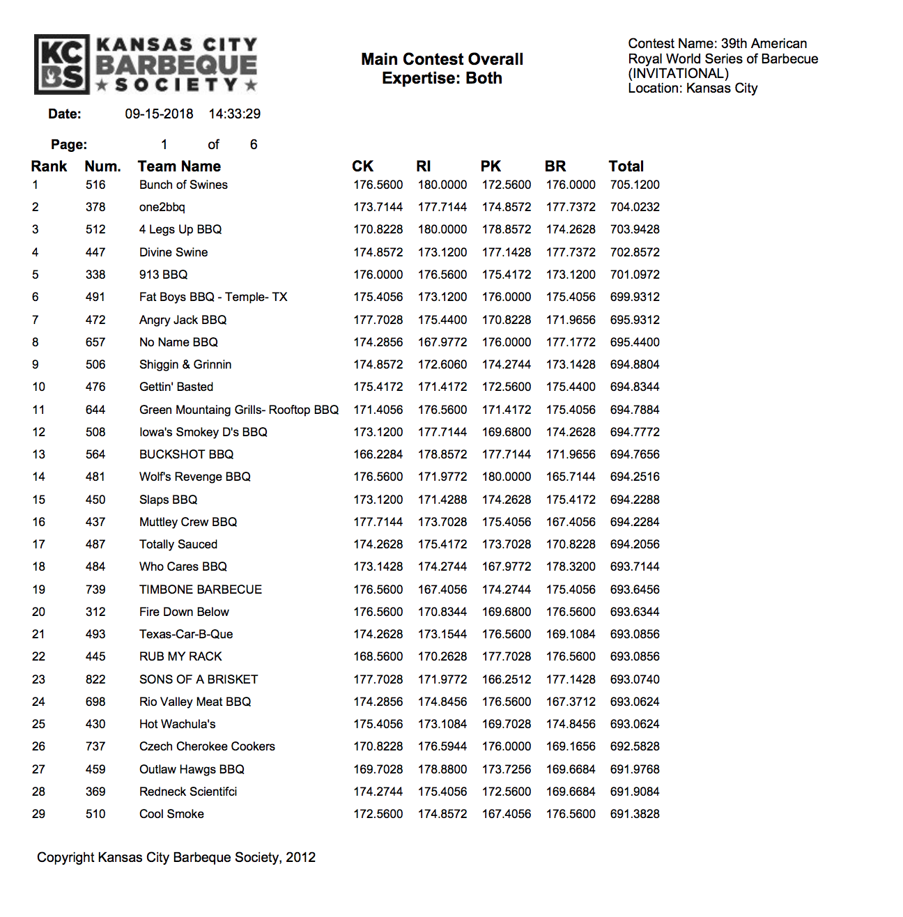 American Royal World Series of Barbecue Invitational Results 2018 Grillocracy Very well made.