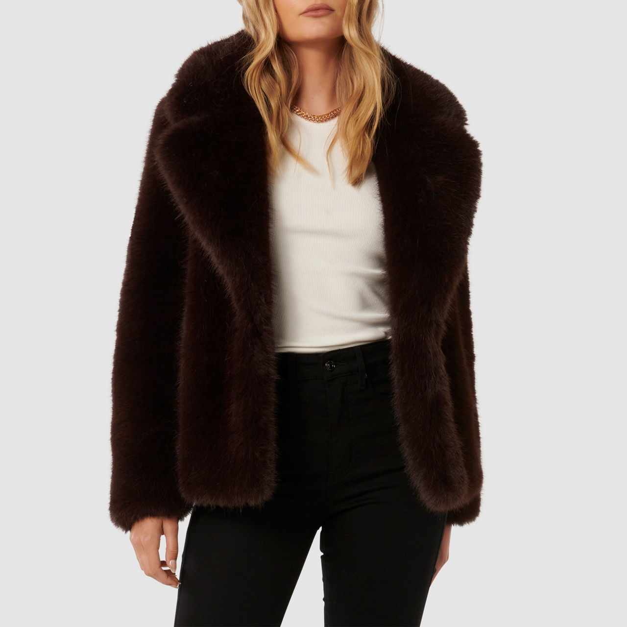 FOREVER NEW Hunter Faux Fur Jacket Chocolate Very well made.