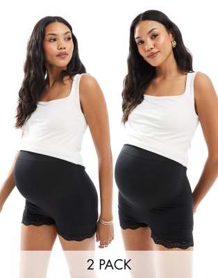 ASOS DESIGN Maternity 2 pack over the bump shorts with lace trim in black Very well made.