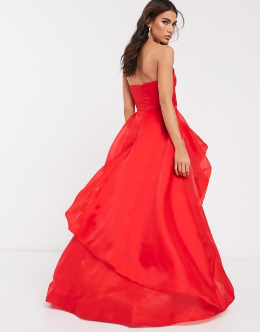 Bariano exclusive bandeau high low organza maxi dress in red Very well made.