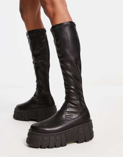 ASOS DESIGN Copenhagen Bottes chaussettes hauteur genou a semelle chunky Noir ASOS Very well made.