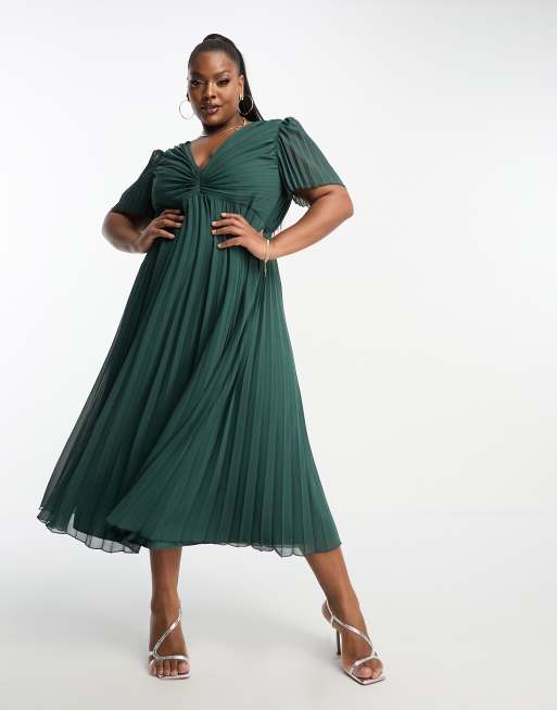 ASOS DESIGN Curve Robe mi longue plissee a manches evasees Vert sapin ASOS Very well made.