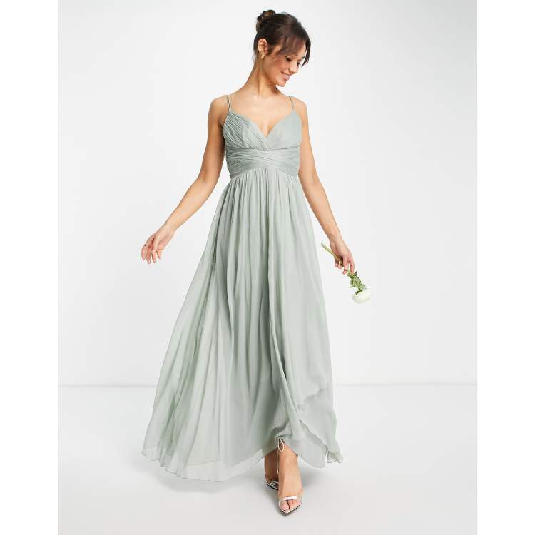 ASOS DESIGN Bridesmaid pleated cami maxi dress with satin wrap waist in olive Very well made.