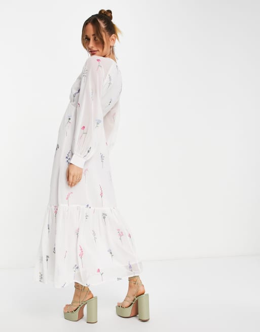 ASOS DESIGN Tall button through maxi tea dress with fluted sleeves in rose floral Very well made.
