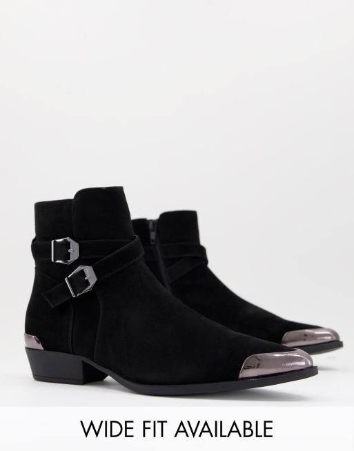 ASOS DESIGN cuban heel western chelsea boots in black faux suede with buckle detail Very well made.