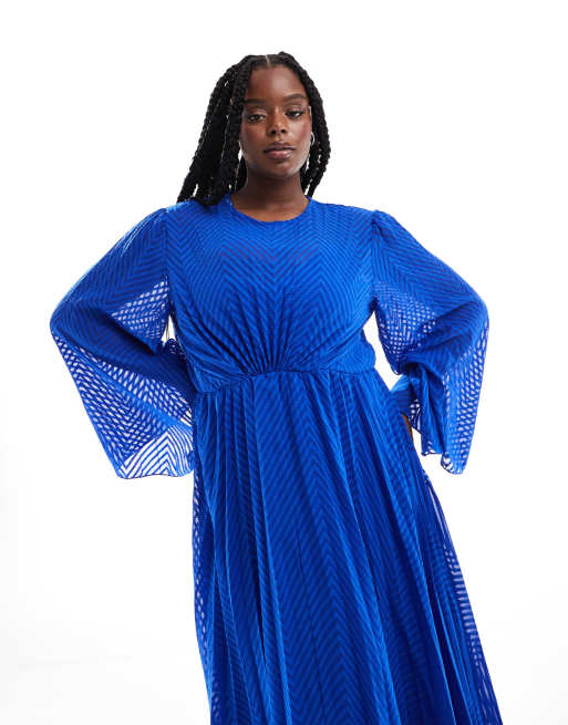 ASOS DESIGN Curve tie back fluted sleeve pleated chevron chiffon midi dress in cobalt Very well made.