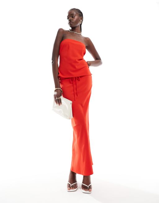 ASOS DESIGN tie waist maxi skirt in red part of a set ASOS Very well made.