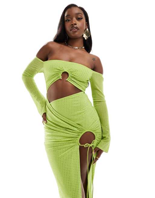 ASOS DESIGN long sleeve knot detail maxi dress in lime green V133693715 42 LiteMF Market Very well made.