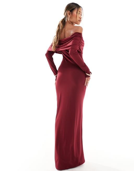ASOS DESIGN extreme bardot maxi dress in wine red ASOS Very well made.