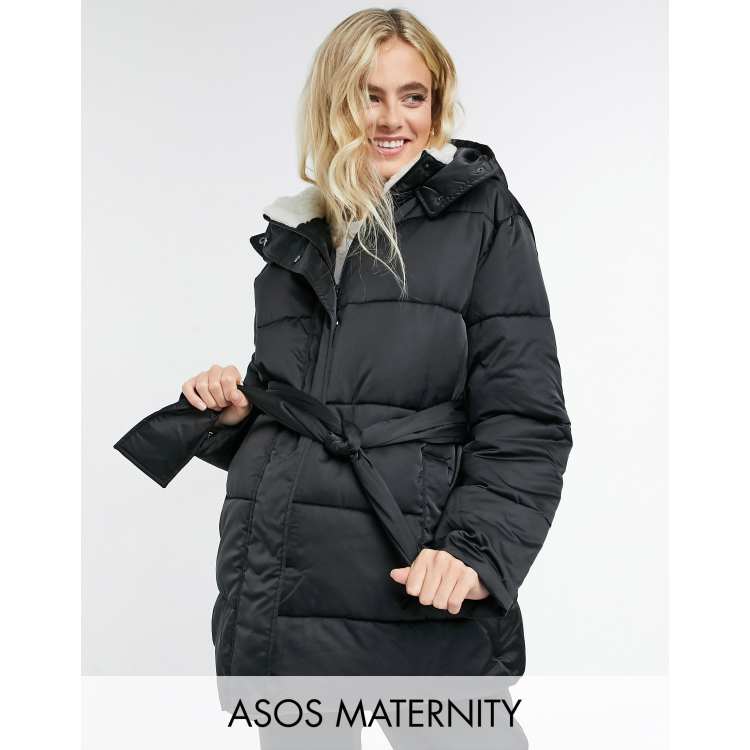 ASOS DESIGN Maternity faux fur lined parka in black Very well made.