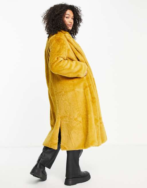 Missguided Plus longline faux fur coat in mustard Very well made.