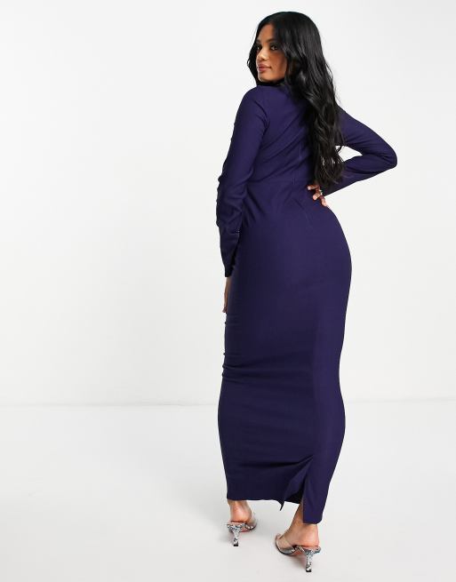 ASOS DESIGN premium high neck maxi dress with drape sleeves in dark blue ASOS Very well made.