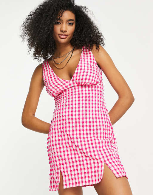 ASOS DESIGN Pink tekstureret mini slip sundress med V hals i gingham Very well made.