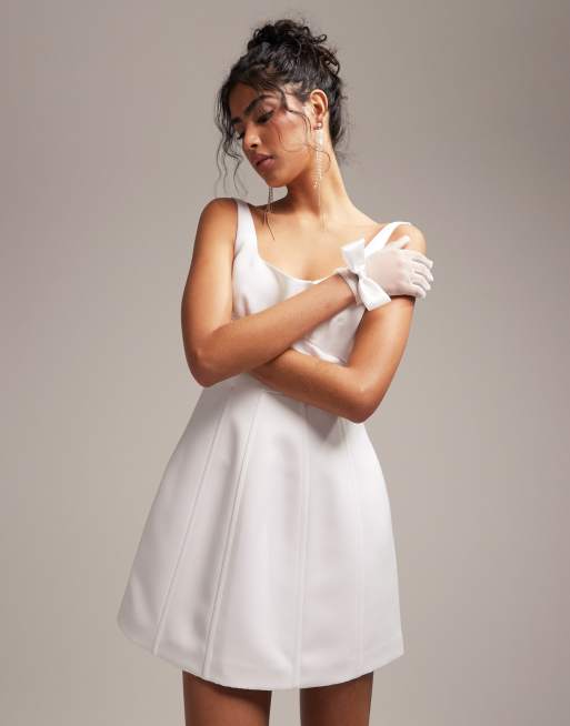 ASOS DESIGN Robe de mariee courte et structuree en satin avec encolure carree Ivoire Very well made.