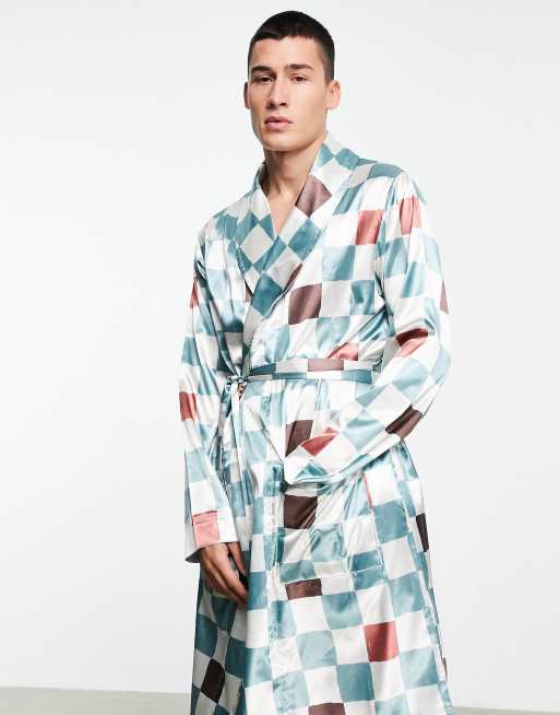 ASOS DESIGN satin dressing gown with check print Very well made.