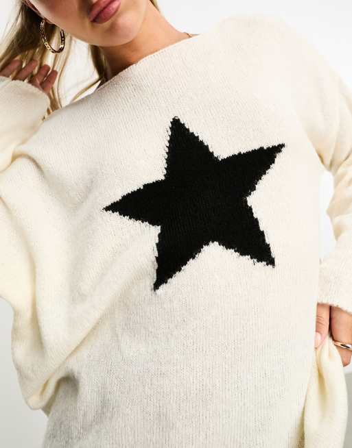 ASOS DESIGN slouchy star sweater in ivory Very well made.