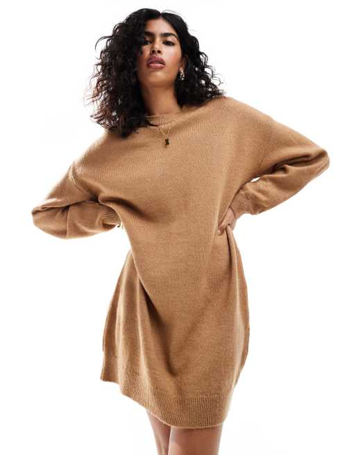 ASOS DESIGN knit mini sweater dress with crew neck in camel Very well made.