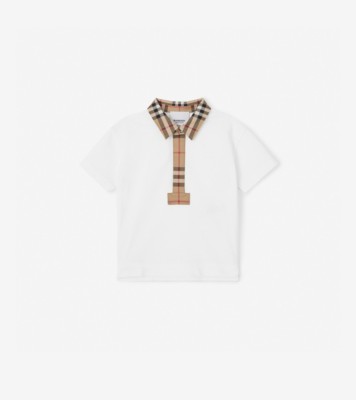 Burberry Kids check trim short sleeved polo shirt kids Cotton 12 White Very well made.