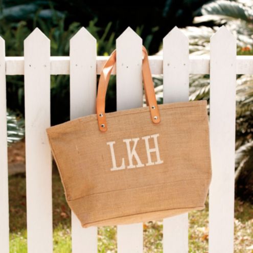 Ballard Designs 25th Anniversary Tote Bag Women s XL Green Jute Leather Straps Very well made.