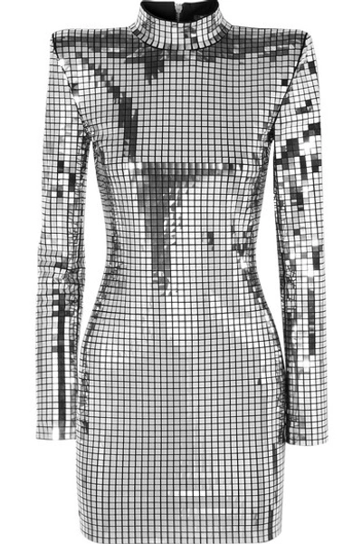 Balmain Mock neck Long sleeve Square mirror Cocktail Dress In Silver ModeSens Very well made.
