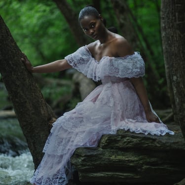 Vintage 1970s Lilac Purple Prom Dress Maxi Dress Sheer Fully Lined Floral Pink and Purple Dress Very well made.