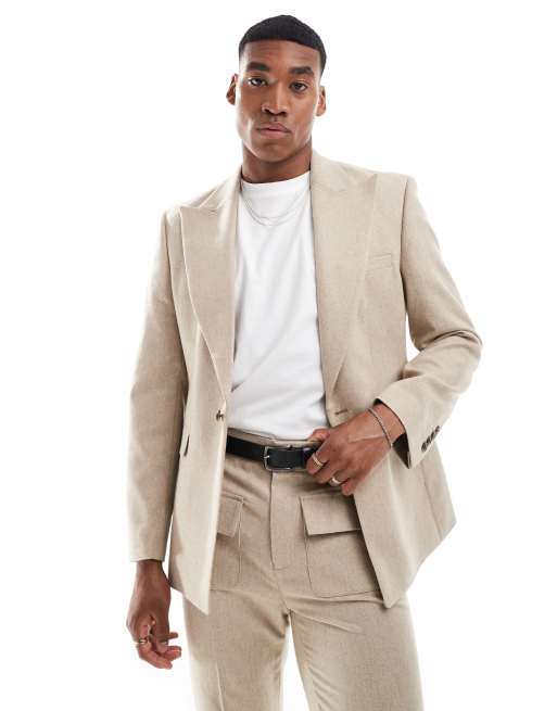ASOS Design Slim 70s Lapel Suit Jacket with Wool in beige Neutral Very well made.