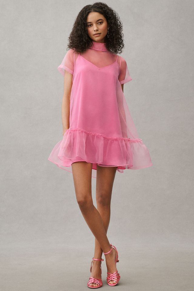 BHLDN Ava Short Sleeve Organza Mini Dress Very well made.