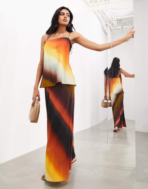 ASOS EDITION bias cut maxi skirt in ombre sunset stripe part of a set Very well made.